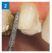 Nessas situações é necessário que a margem da restauração seja atraumática e pouco invasiva para o periodonto. Para satisfazer essas exigências, a Komet desenvolveu, em colaboração com o Prof. Günay da Universidad Médica de Hannover, produtos específicos para preparo de coroa, com ponta guia.