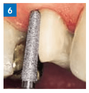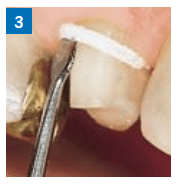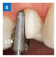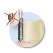 Durante a preparação da margem subgengival, a ponta guia serve para manter uma distância definida que preserva o periodonto.